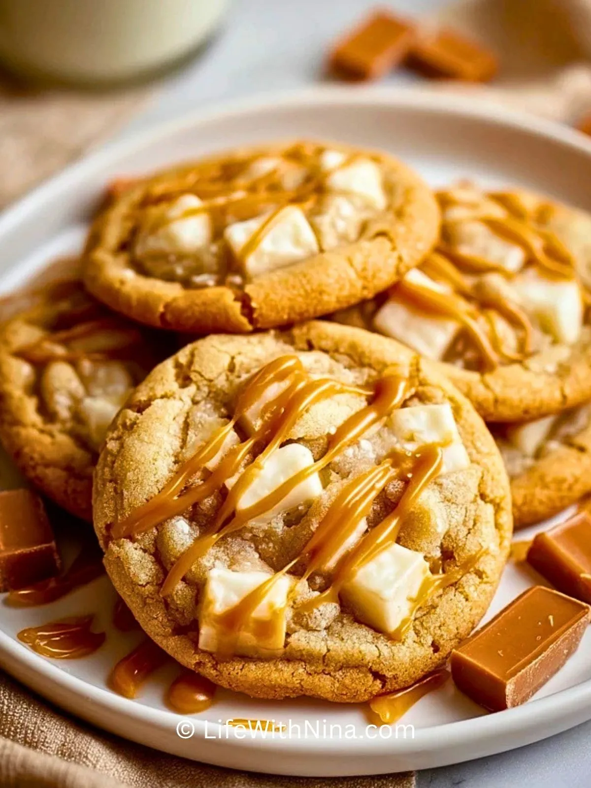 Keywords: Karamellcreme-Fudge-Kekse, Cookies, Karamellkekse, weiße Schokolade, Fudge Kekse