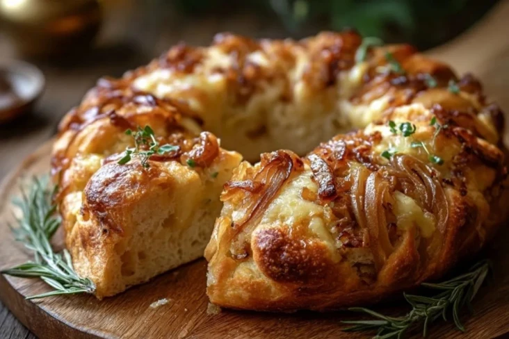 Karamellisierter Zwiebel- und Gruyère-Gefüllter Brotwreath