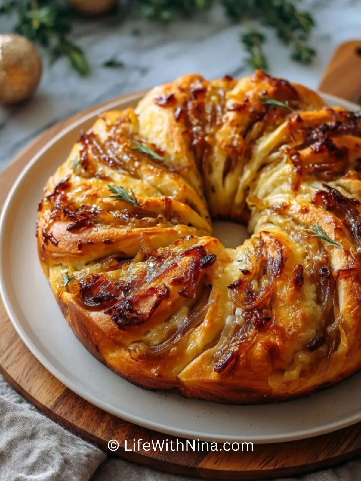Karamellisierter Zwiebel- und Gruyère-Gefüllter Brotwreath