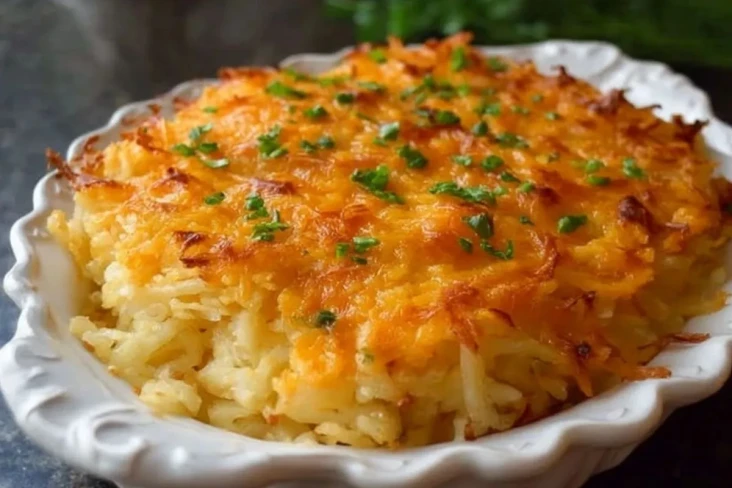 Dieser Kartoffelauflauf mit Rösti verbindet cremig-weiche Kartoffeln mit einer goldbraunen, knusprigen Käsekruste – ein unkompliziertes Wohlfühlgericht aus dem Ofen, das perfekt zu Fleischgerichten passt, aber auch solo mit einem frischen Salat ein satt machendes Abendessen ist.