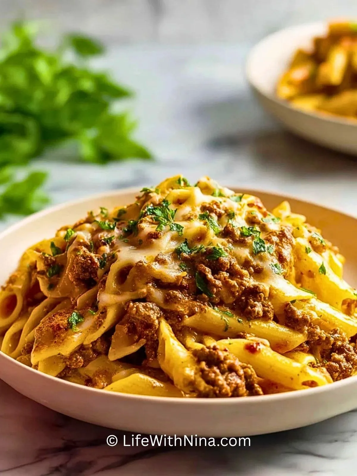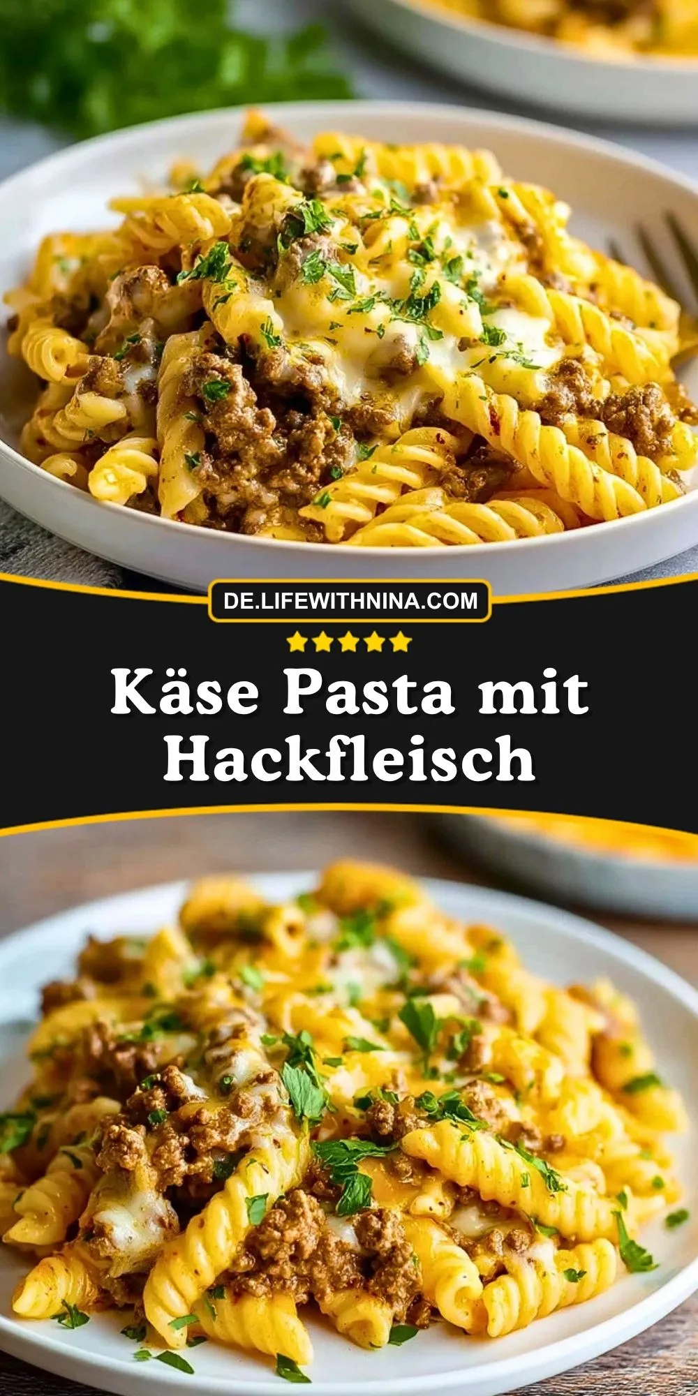 Keywords: Käse-Pasta mit Hackfleisch, Pasta mit Hackfleisch, cremige Nudeln, schnelles Abendessen, Familienrezept