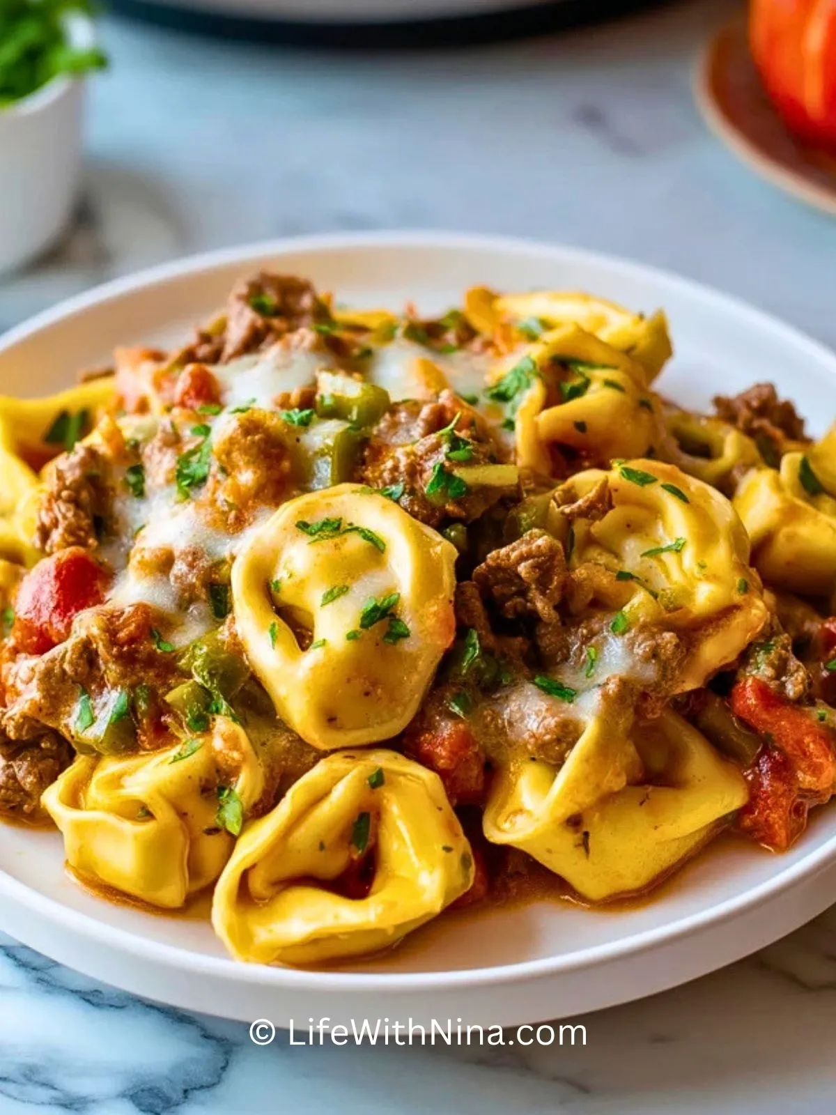 Kräftiges Rindfleisch, zarte Käse-Tortellini, bunte Paprika und eine cremige Käsesauce machen dieses Gericht zu einem herzhaften Wohlfühlessen aus dem Slow Cooker. Es ist einfach vorzubereiten, wunderbar sättigend und ideal für Tage, an denen du ein warmes, gemütliches Essen mit wenig Aufwand auf den Tisch bringen möchtest.