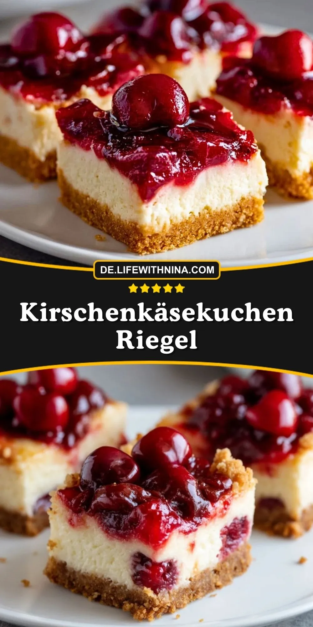 Kirschenkäsekuchen Riegel vereinen das Beste aus zwei Welten: Den klassischen New York Cheesecake und fruchtige Kirschtorte. Durch die handliche Riegelform sind sie unkompliziert zu servieren, super vorzubereiten und passen perfekt zu jeder Gelegenheit. Außerdem sorgt das Zusammenspiel aus säuerlichen Kirschen und süßer Frischkäsecreme für ein einzigartiges Geschmackserlebnis, das einfach glücklich macht!