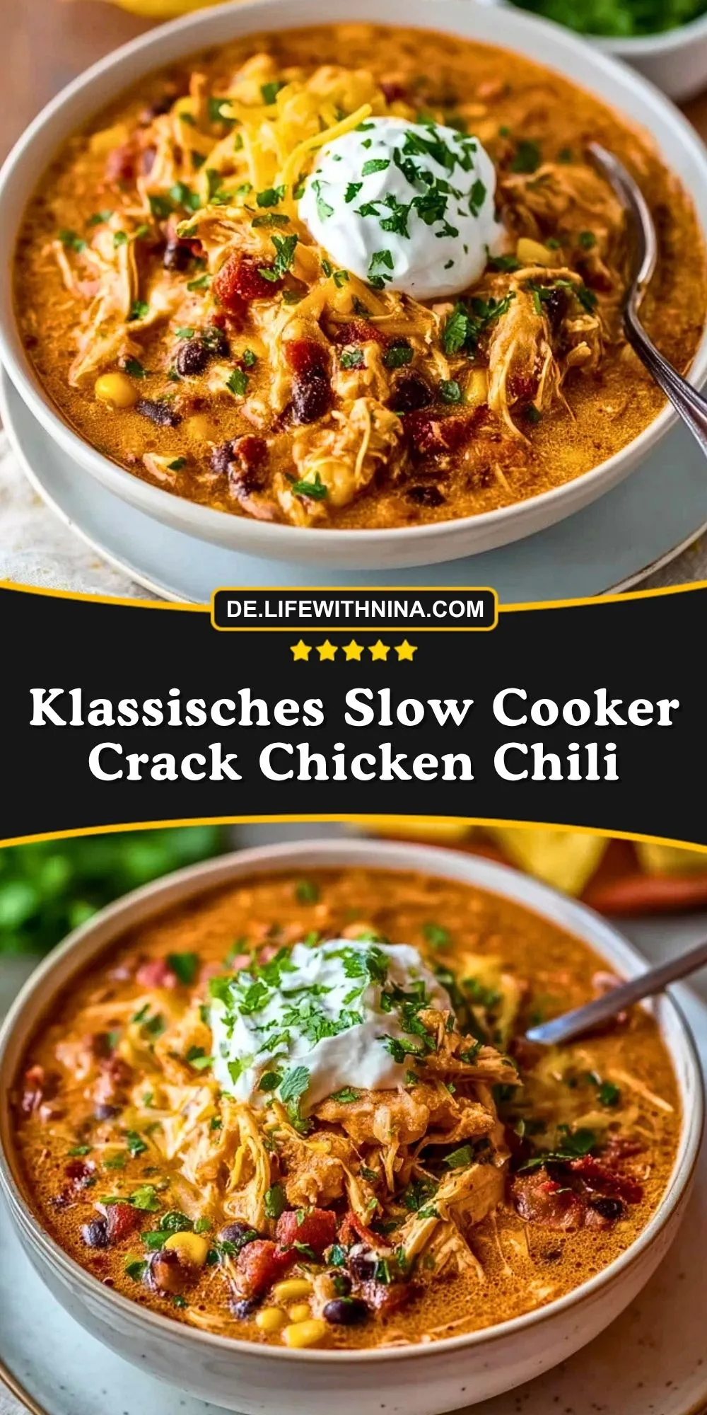 Keywords: Slow Cooker Crack Chicken Chili, Hähnchen Chili, cremiges Chili, Slow Cooker Rezept, Familienessen