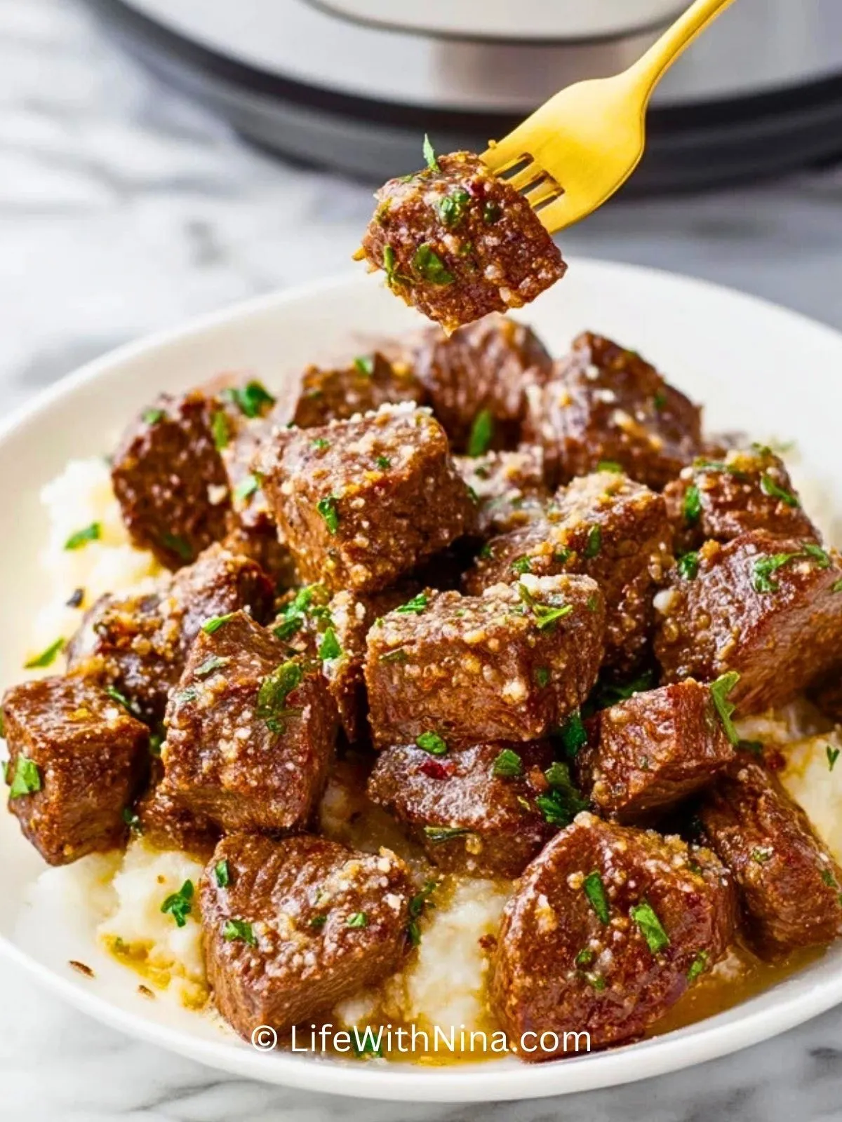 Knoblauch Parmesan Rinderbissen aus dem Slow Cooker