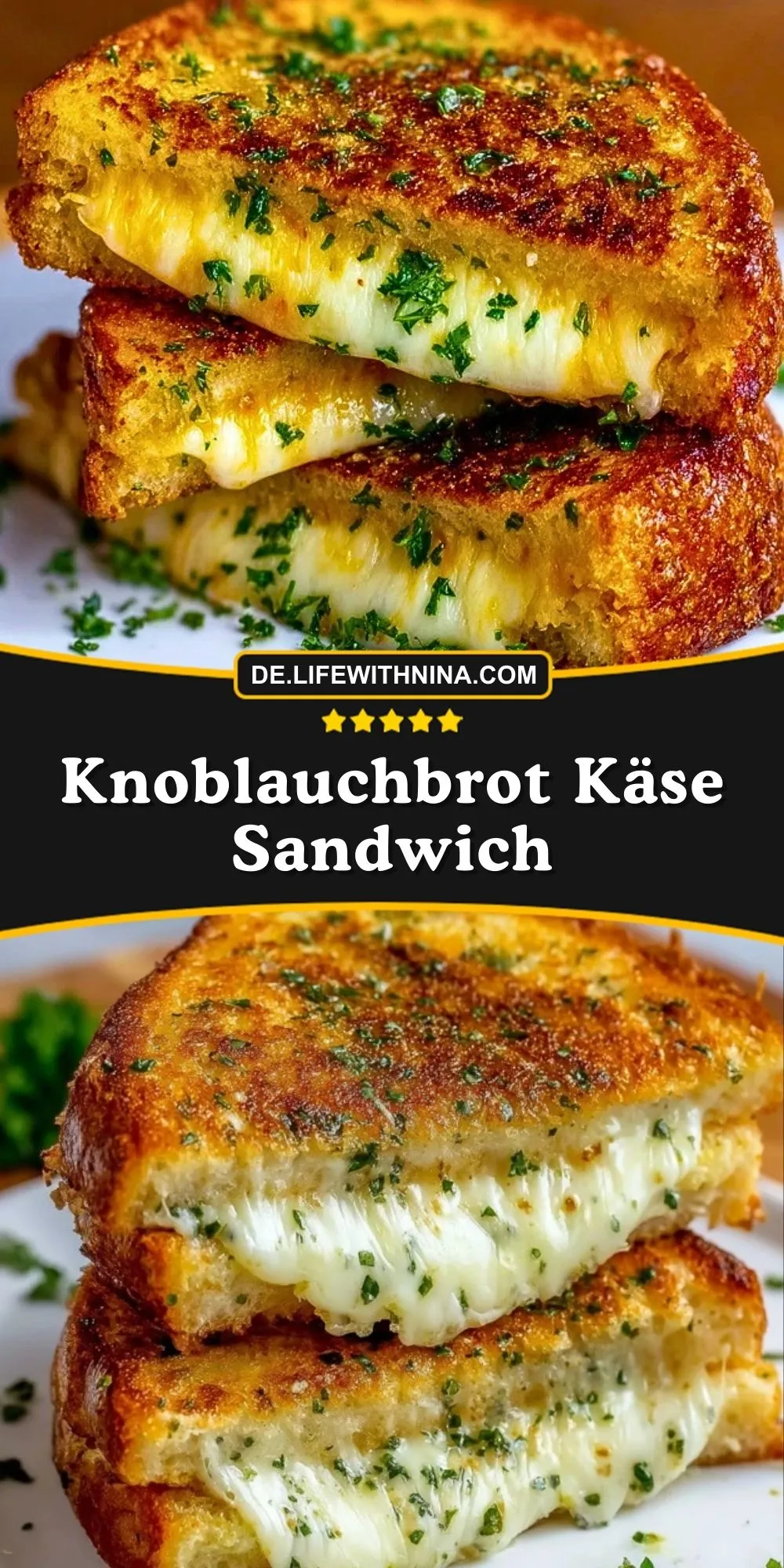 Dieses Knoblauchbrot Käse Sandwich vereint knuspriges Brot, eine aromatische Knoblauchbutter und herrlich geschmolzenen Käse zu einem unwiderstehlichen Snack oder schnellen Mittagessen. Ideal für gemütliche Abende, Partys oder einfach, wenn du Lust auf Comfort Food hast!