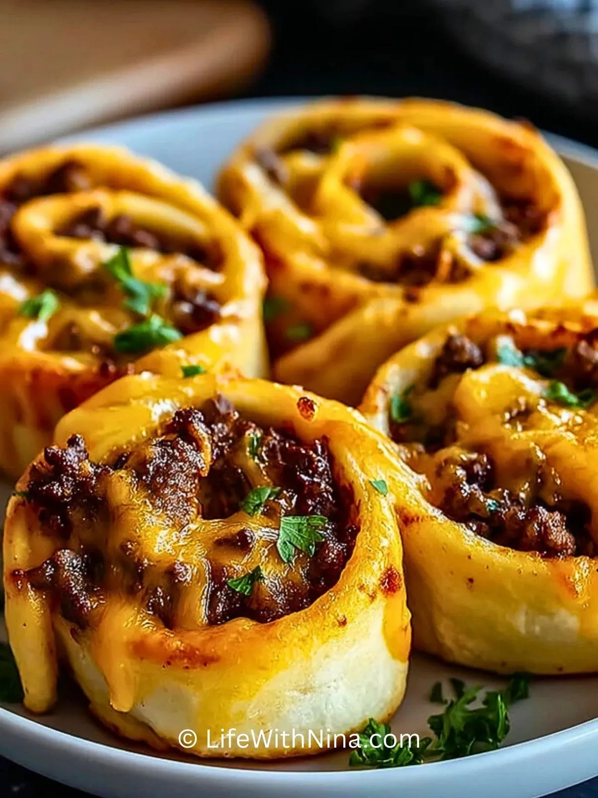 Diese Knoblauchbutter Cheeseburger Rolle kombiniert saftiges Rinderhack, geschmolzenen Cheddar und aromatische Knoblauchbutter in weichem Pizzateig zu herzhaften Ofenschnecken, die sich perfekt als Fingerfood, Snack oder unkompliziertes Hauptgericht eignen.