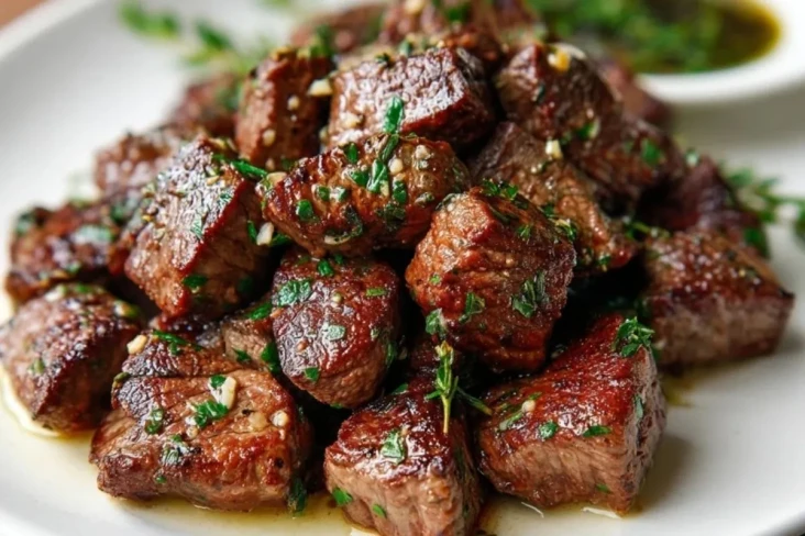 Knoblauchbutter Steakwürfel sind ein herrlich aromatisches Fingerfood oder Beilagen-Highlight! Zarte Rinderwürfel werden scharf angebraten und in einer buttrigen Knoblauch-Kräuter-Sauce geschwenkt. Sie sind außen schön gebräunt, innen saftig – perfekt für Fleischliebhaber und alle, die es herzhaft mögen.