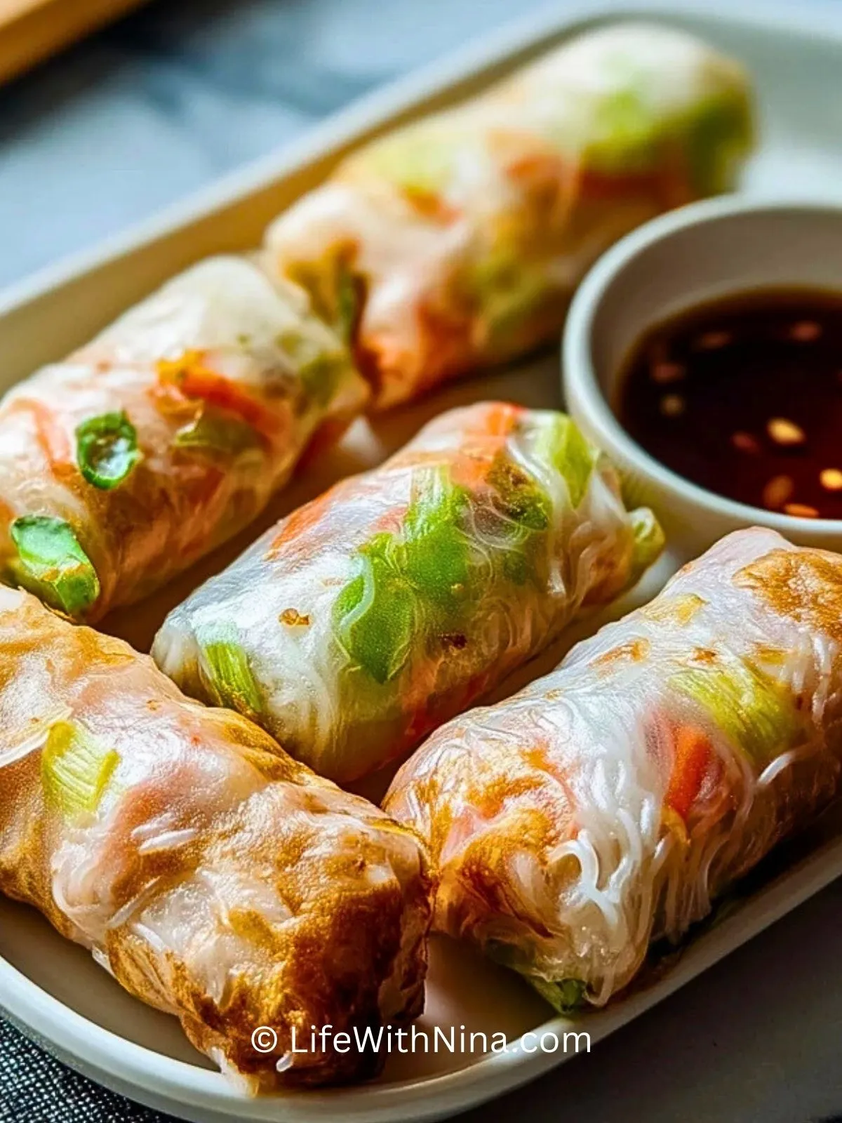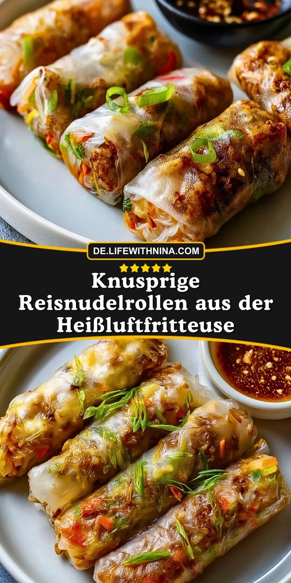 Keywords: Reisnudelrollen, Heißluftfritteuse, Airfryer, asiatischer Snack, Frühlingsrollen, vegetarisch