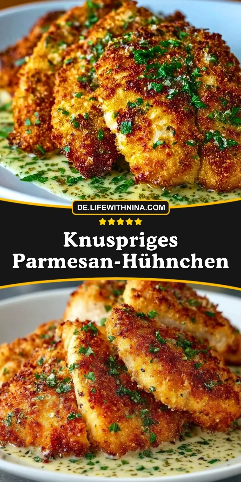 Ob als Highlight beim Familienessen oder als schnelles Abendessen unter der Woche: Knuspriges Parmesan-Hühnchen ist vielseitig, unkompliziert und immer ein echter Genuss. Serviert auf einer cremigen Sauce, mit Pasta, Kartoffeln oder einem frischen Salat – dieses Rezept passt zu jedem Anlass und wird garantiert zum neuen Lieblingsgericht.
