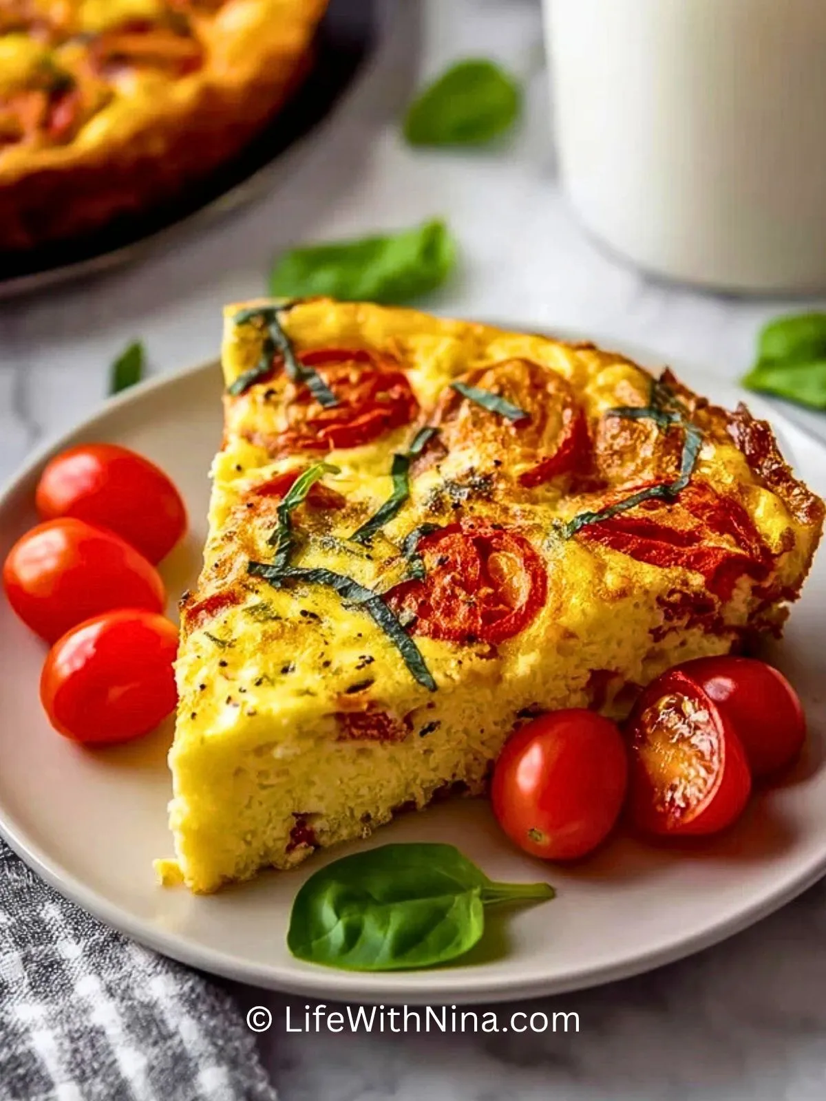 Sie ist beliebt, weil sie den vollen Geschmack einer klassischen Quiche mit deutlich weniger Aufwand verbindet. Ohne Boden rückt die Füllung stärker in den Mittelpunkt: süßliche Tomaten, frisches Basilikum, würziger Käse und eine lockere, goldgelbe Eiermasse. Außerdem lässt sich das Rezept gut vorbereiten, warm oder kalt servieren und je nach Saison leicht anpassen.