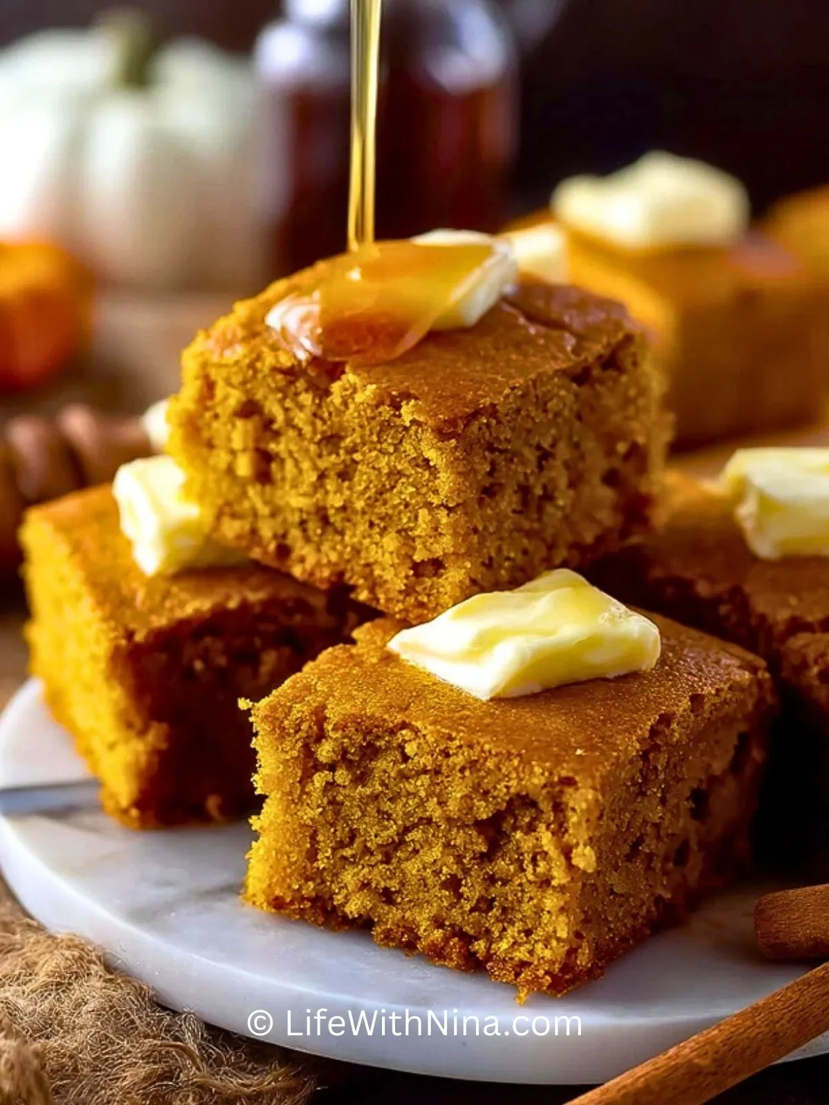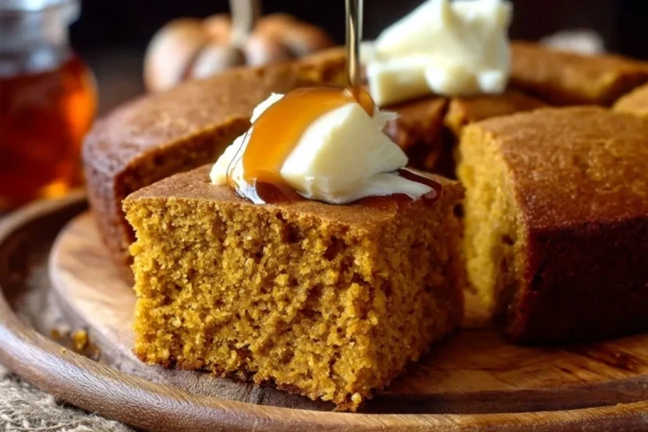 Saftiges Kürbis-Maisbrot mit Zimt-Honig-Butter ist ein aromatisches Herbstbrot, das dank Kürbispüree, Maismehl und warmen Gewürzen wunderbar weich wird und zusammen mit luftiger Zimt-Honig-Butter perfekt zum Frühstück, Brunch oder als süße Beilage zu Suppen passt.