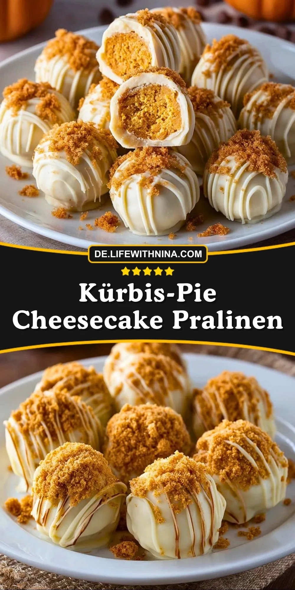 Sie verbinden drei beliebte Dessertwelten in einem kleinen Bissen: die würzige Wärme von Kürbiskuchen, die cremige Konsistenz eines Cheesecakes und den edlen Charakter von Pralinen. Dadurch schmecken sie gleichzeitig gemütlich, festlich und raffiniert, ohne aufwendig zu sein.