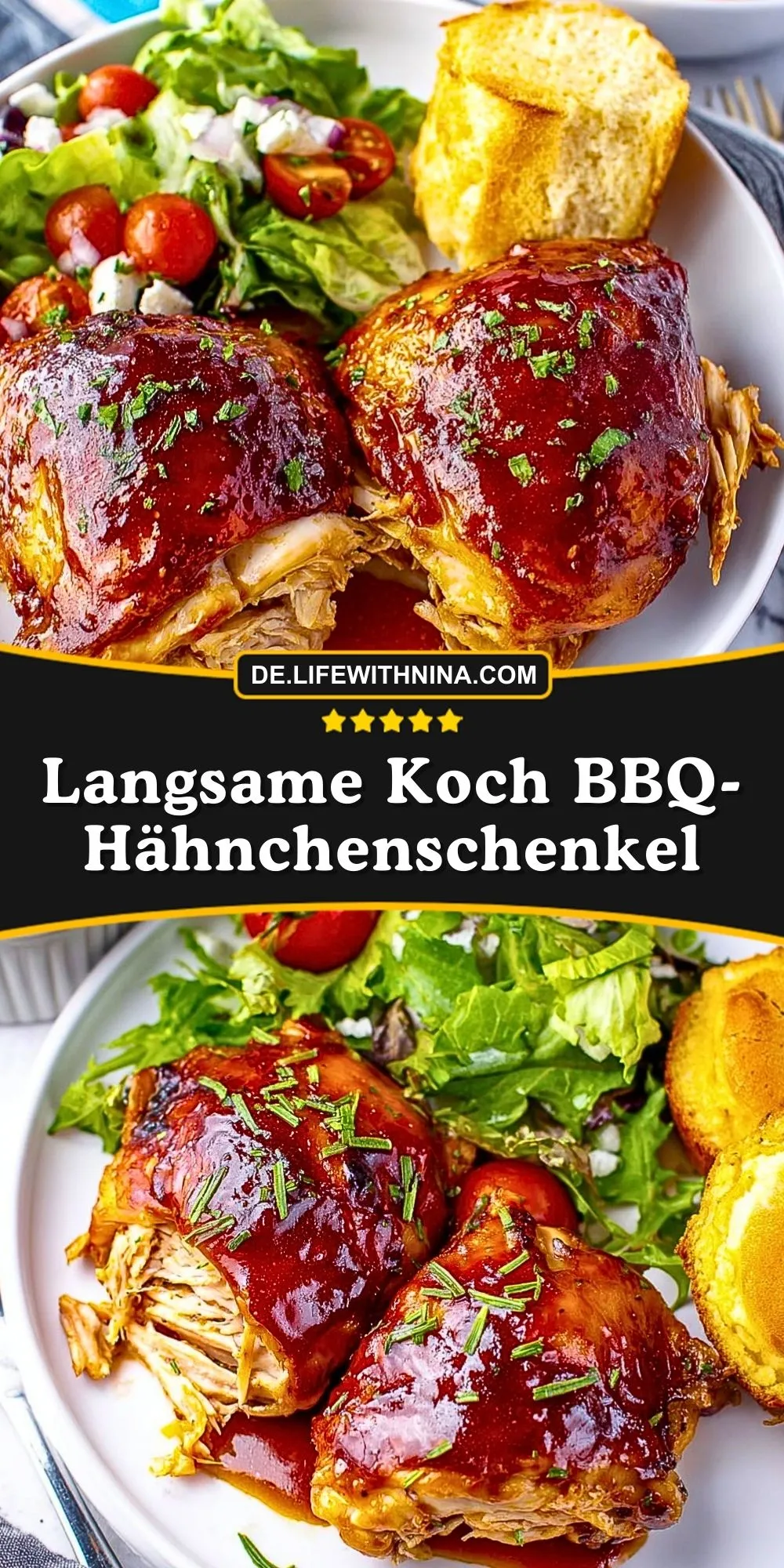 Wenn du Lust auf zartes, saftiges Hähnchen mit einer aromatischen, rauchigen Barbecue-Glasur hast, dann sind diese langsam gegarten BBQ-Hähnchenschenkel genau das Richtige für dich. Die Kombination aus zarter Fleischtextur und würziger, leicht karamellisierter Sauce macht dieses Gericht zu einem echten Wohlfühlessen – perfekt für ein entspanntes Familienessen oder ein gemütliches Beisammensein mit Freunden.