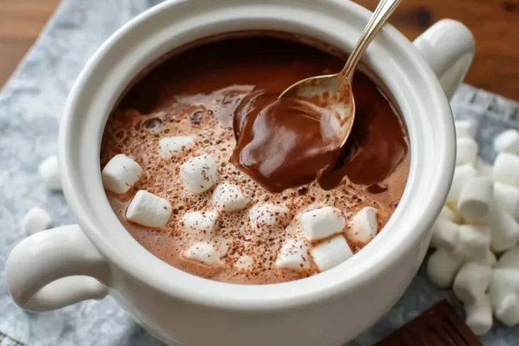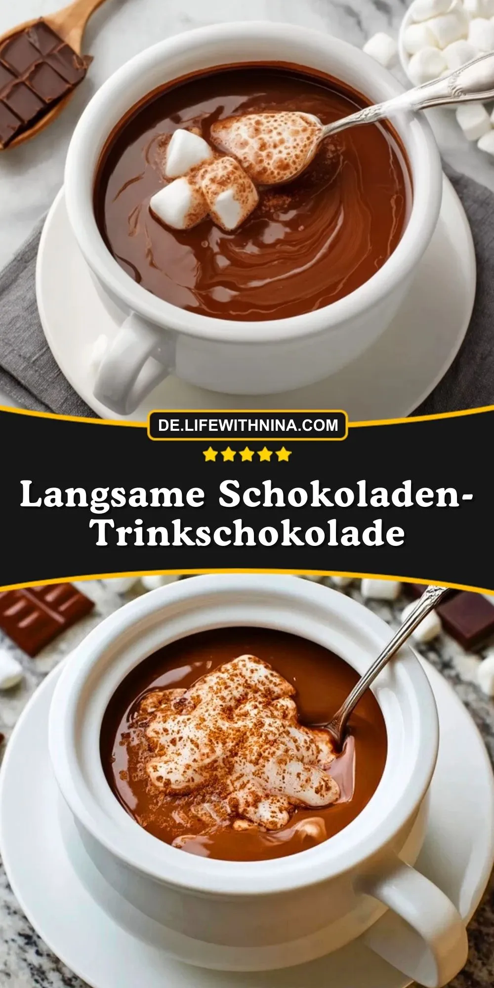 Die langsame Zubereitung sorgt dafür, dass sich die Aromen voll entfalten und die Konsistenz besonders samtig wird. Mit fluffigen Marshmallows oder einem Sahnehäubchen serviert, wird diese heiße Schokolade zum absoluten Wohlfühl-Getränk.