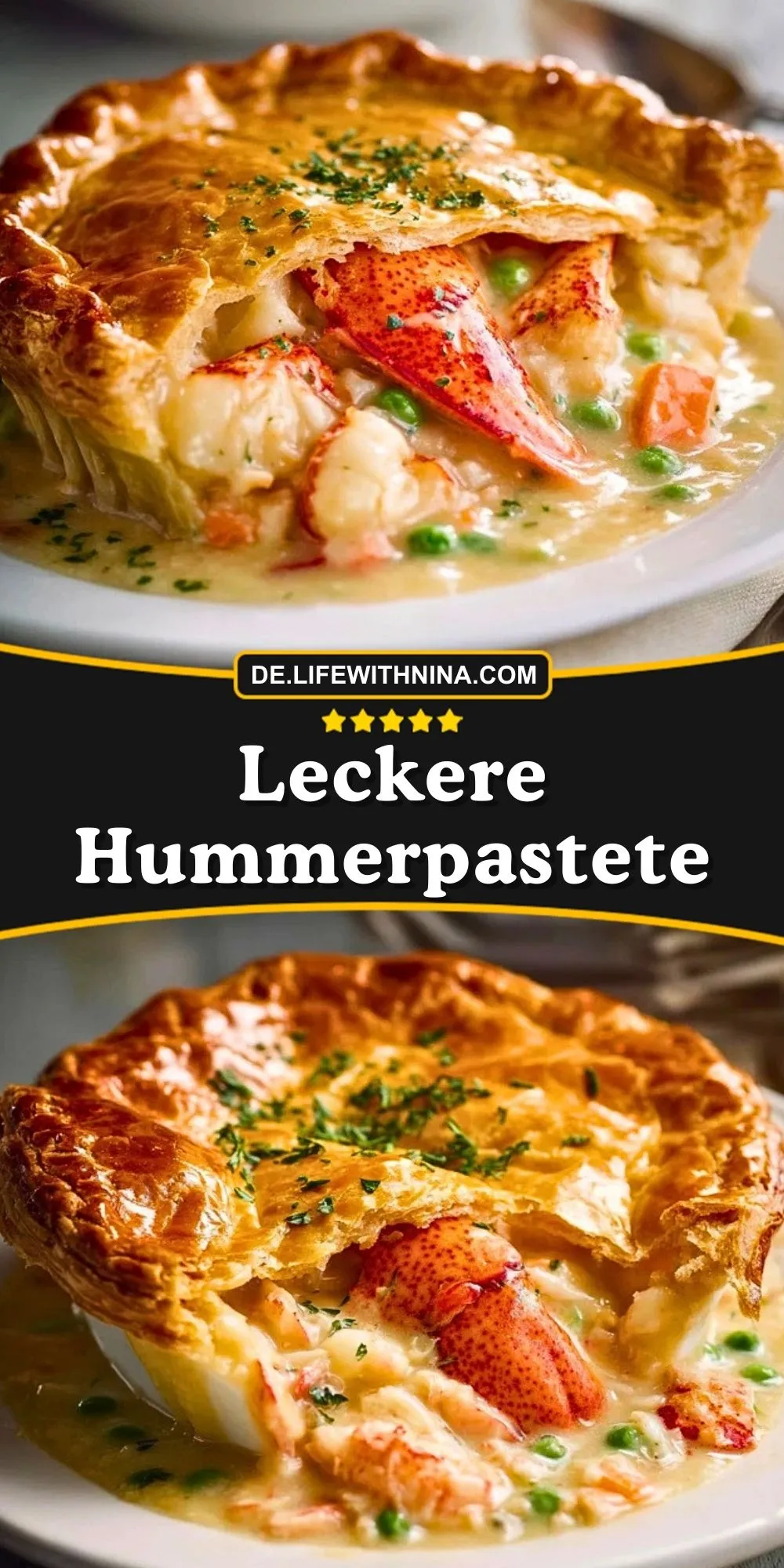 Diese Leckere Hummerpastete kombiniert zartes Hummerfleisch, cremige Sauce und eine goldbraune Blätterteighaube zu einem festlichen Wohlfühlgericht, das sich perfekt für besondere Anlässe oder ein luxuriöses Dinner zu Hause eignet.