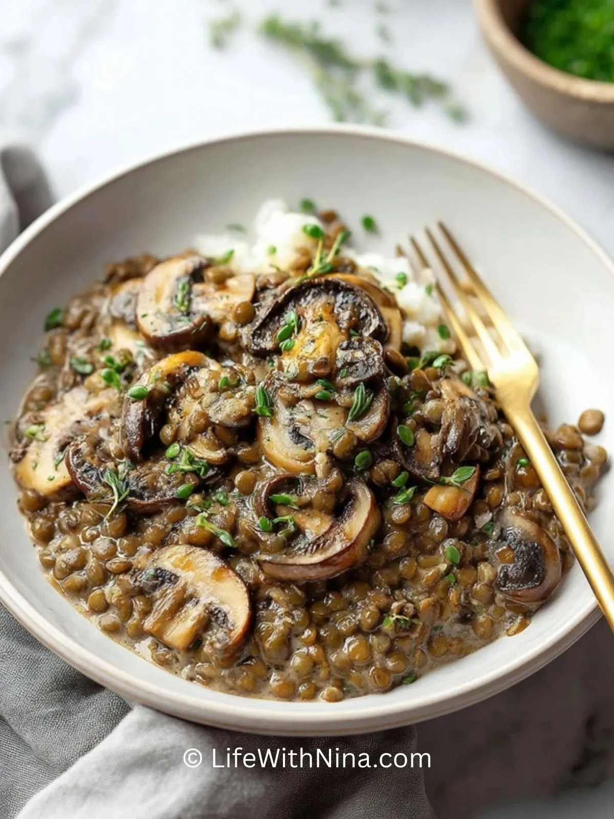 Ja, dieses Gericht ist ideal zum Vorbereiten. Du kannst es komplett fertigstellen und im Kühlschrank aufbewahren oder die Linsen separat vorkochen und später mit den frisch angebratenen Pilzen und der Sauce kombinieren. Beim Aufwärmen eventuell etwas Flüssigkeit ergänzen, damit die Sauce wieder cremig wird.