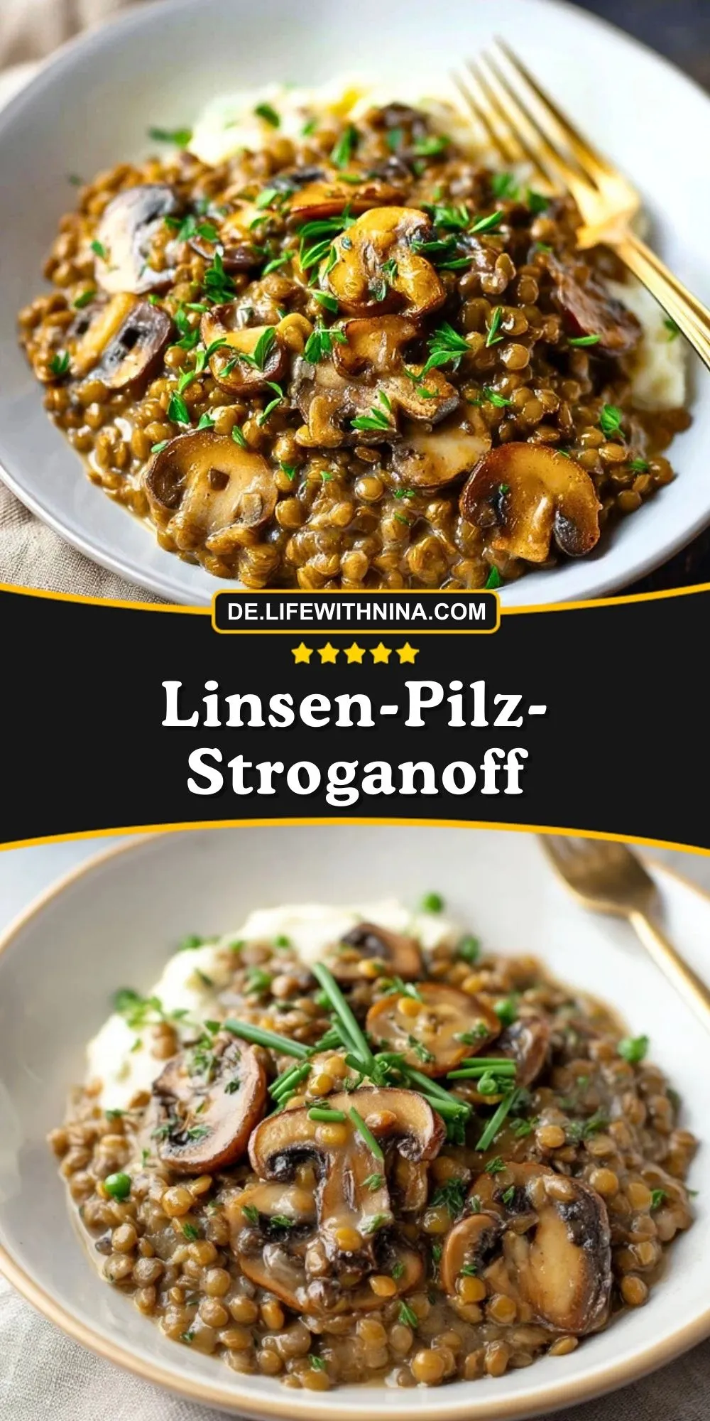 📌 Speichere dieses Linsen-Pilz-Stroganoff auf deinem Pinterest-Board, damit du das Rezept jederzeit wiederfindest, wenn der Wunsch nach einem cremigen Wohlfühlgericht aufkommt.