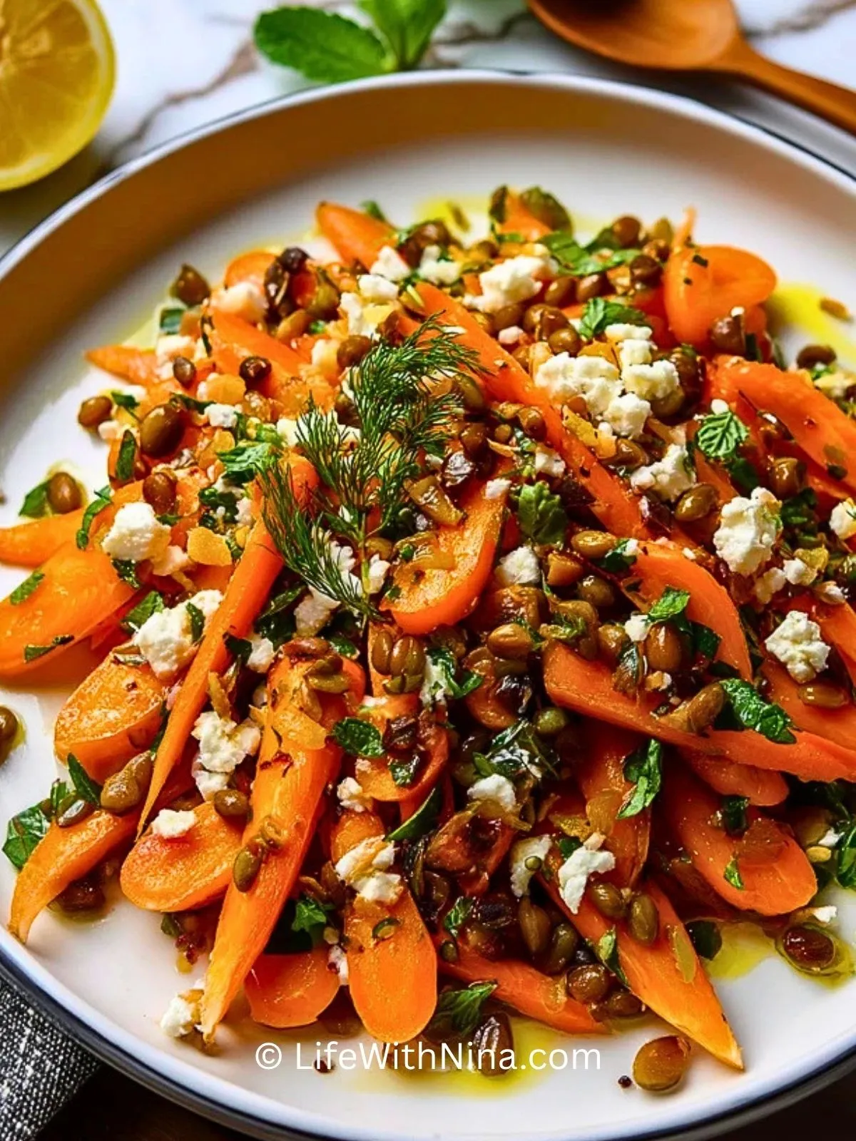 Weil er gleichzeitig knackig, saftig und aromatisch ist. Die Karotten bringen natürliche Süße mit, die Säure aus dem Dressing sorgt für Frische, und Kräuter sowie würzige Toppings geben Tiefe. Dadurch ergänzt der Salat sowohl herzhafte Hauptgerichte als auch leichte Sommergerichte, ohne ihnen die Show zu stehlen.
