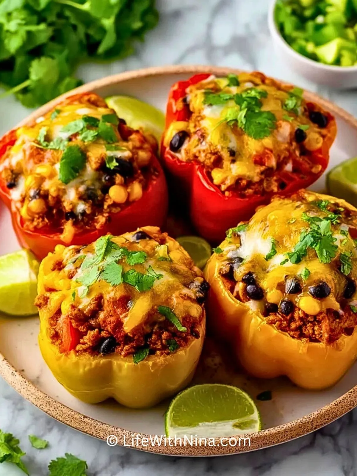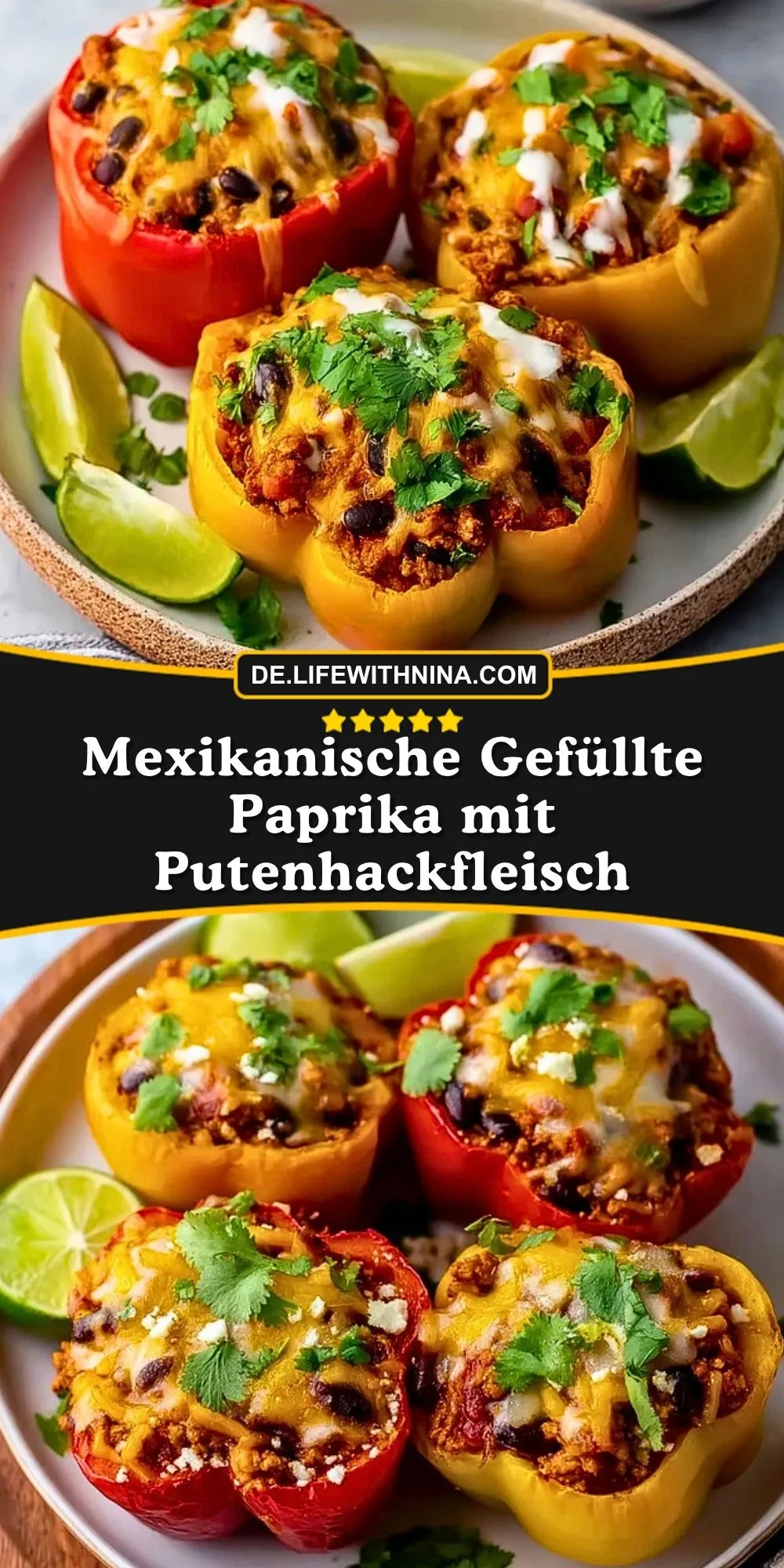 Keywords: mexikanische gefüllte paprika, gefüllte paprika mit putenhackfleisch, paprika aus dem ofen, tex mex rezept