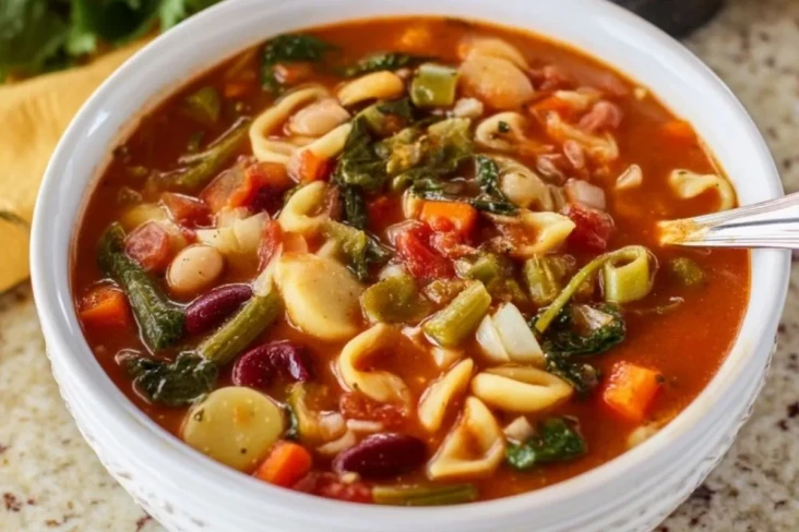 Eine traditionelle Minestrone Suppe zeichnet sich durch ihre Vielfalt an Gemüse, Hülsenfrüchten und oft auch Pasta oder Reis aus. Die Basis bildet meist eine Tomatenbrühe, die mit Kräutern wie Oregano oder Thymian abgeschmeckt wird. Wichtig ist, dass die Zutaten in gleichmäßige Stücke geschnitten werden und genügend Zeit haben, ihr Aroma an die Brühe abzugeben.