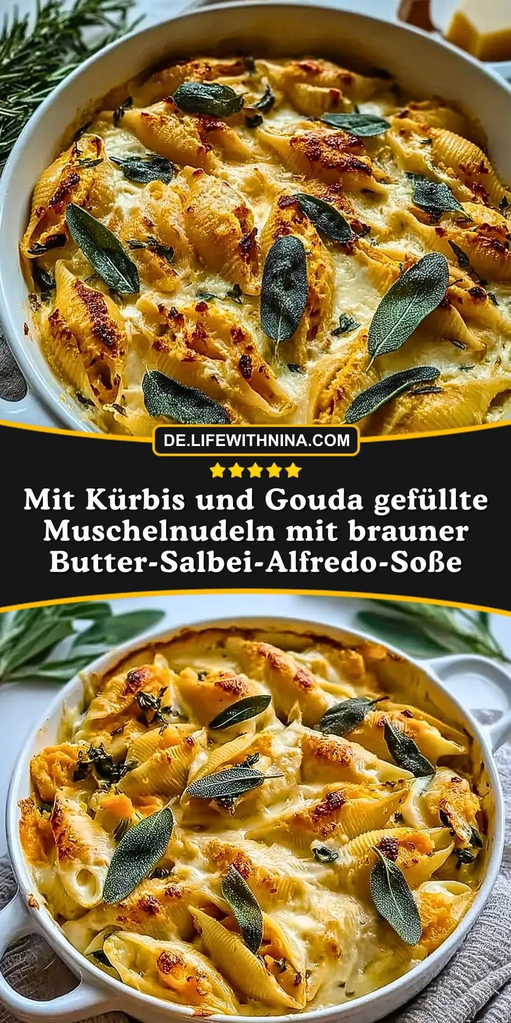 Mit Kürbis und Gouda gefüllte Muschelnudeln mit brauner Butter-Salbei-Alfredo-Soße