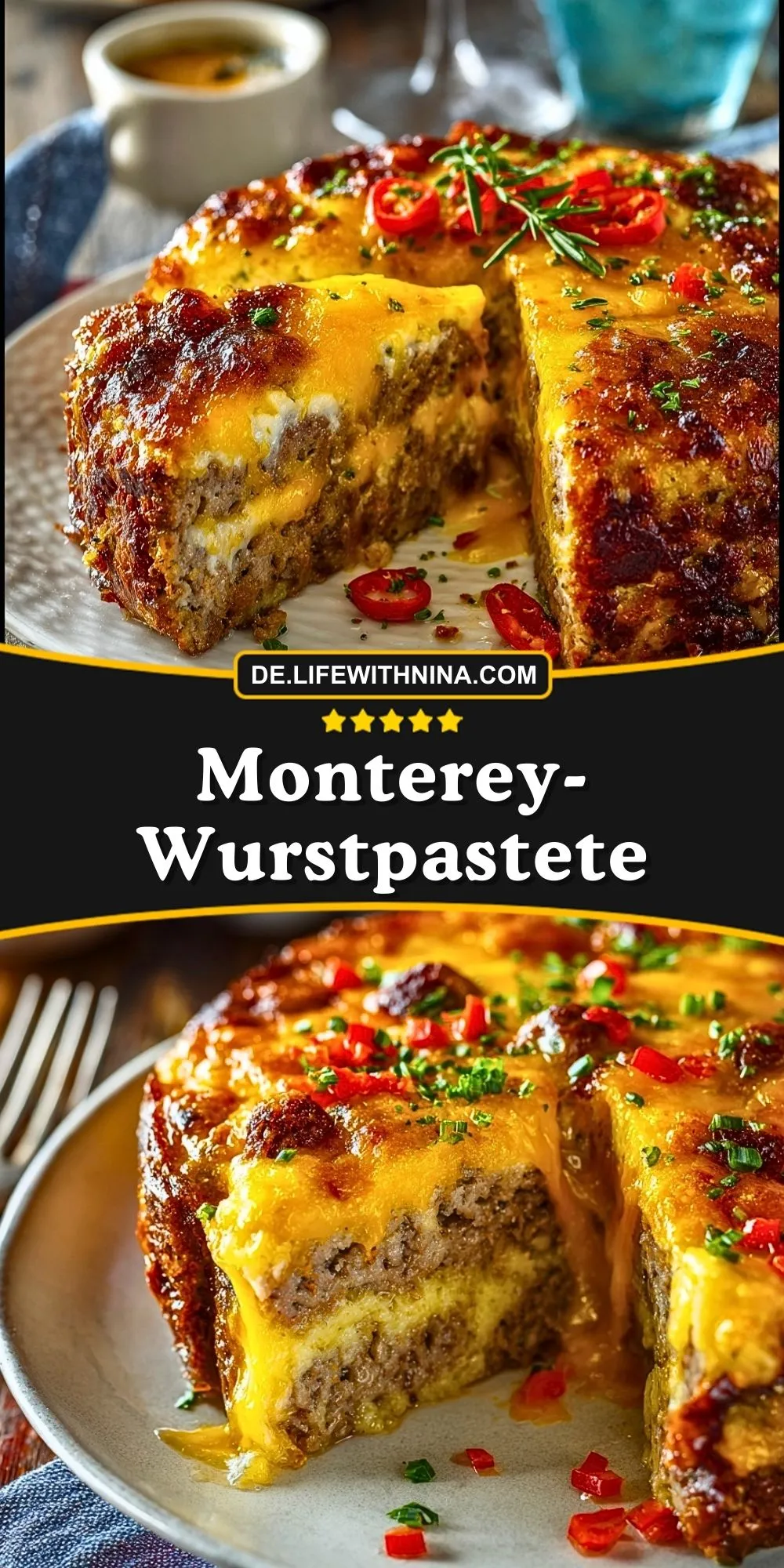 Deftige Monterey-Wurstpastete mit würziger Fleischfüllung, Paprika, feiner Kräuternote und einer goldgelben Cheddar-Kruste. Perfekt für ein herzhaftes Familienessen oder das nächste Brunch-Buffet. Ein echter Wohlfühlklassiker aus dem Ofen!