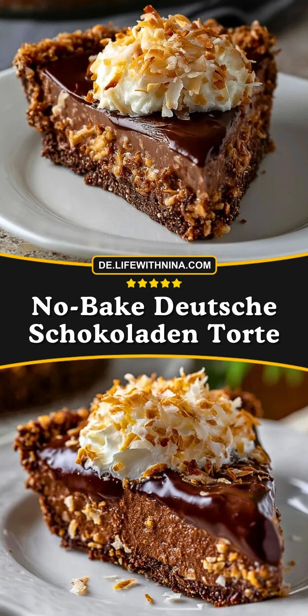 Keywords: No-Bake Deutsche Schokoladen Torte, Schokoladentorte ohne Backen, Kokos Pekan Dessert, Kühlschranktorte