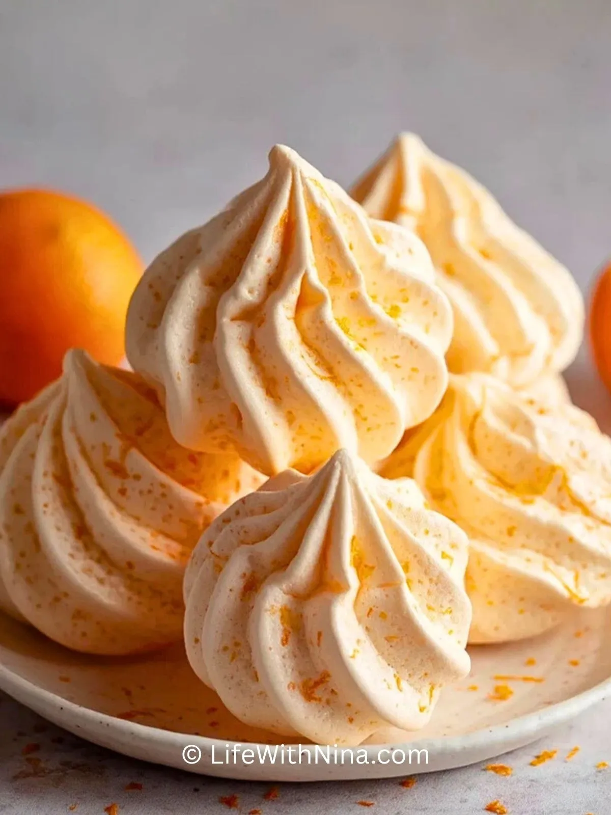 Orangen-Baiser-Kekse sind federleicht, knusprig und werden mit frischem Orangenschalenabrieb verfeinert. Sie zergehen auf der Zunge, bringen ein fruchtiges Aroma und sind ideal als kleines Gebäck zum Kaffee, als essbare Deko oder süßes Geschenk. Wer Baiser mag, wird diese Version lieben!