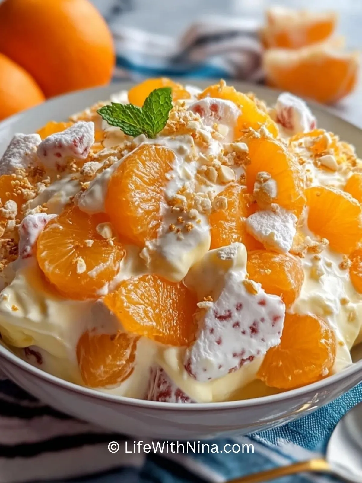 Ein cremig-fruchtiges Orangen-Sahne-Dessert mit Mandarinen, Ananas und Weintrauben, das wunderbar erfrischend schmeckt und sich perfekt für Gäste, Familienfeiern oder ein schnelles Dessert aus dem Kühlschrank eignet.