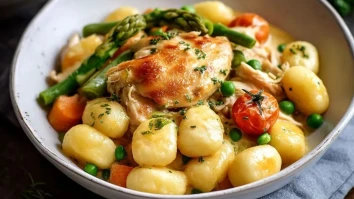 Klassisches Hähnchen mit Gnocchi und Gemüse