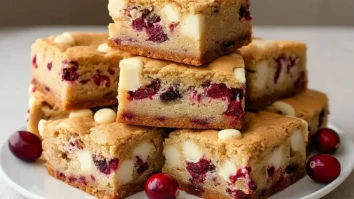 Cremige Weiße Schokoladen-Cranberry-Blondies