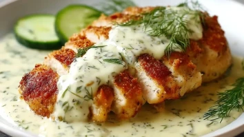 Knuspriges Hähnchen mit Dill-Gurken-Parmesan-Sauce