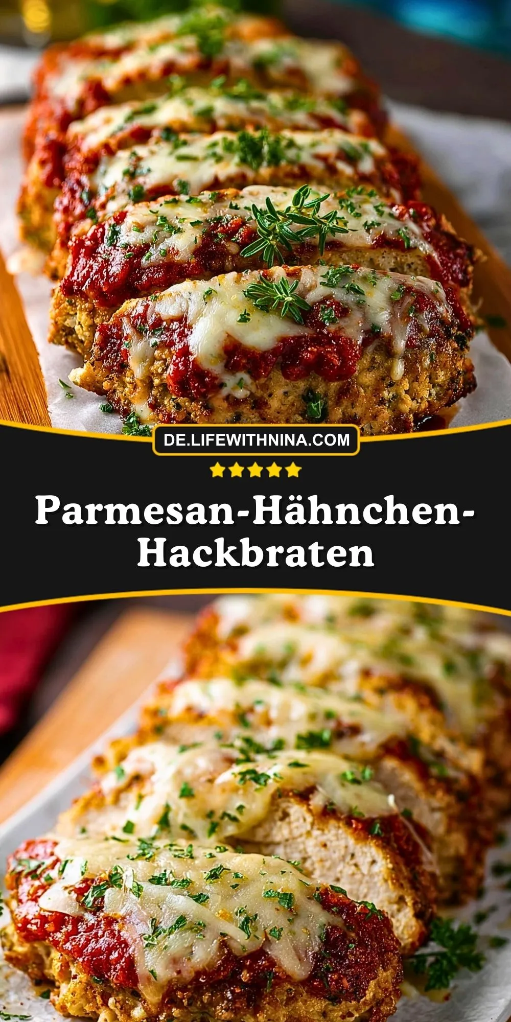 Ein saftiger Hackbraten aus zartem Hähnchen, verfeinert mit Parmesan, italienischen Kräutern, Tomatensauce und goldbraunem Mozzarella – ein herzhaftes Familiengericht, das immer gelingt!