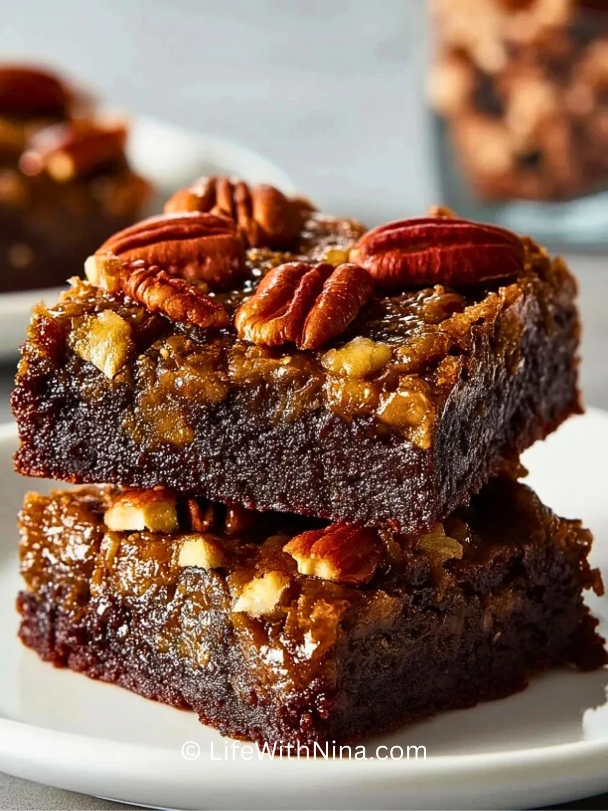 Unglaublich saftige Brownies mit einer knackigen Pekannuss-Karamellschicht. Perfekt für festliche Anlässe, zum Kaffee oder als süßes Mitbringsel. Die schokoladige Basis harmoniert wunderbar mit der nussigen Karamellnote und macht jeden Bissen zu einem kleinen Genussmoment.
