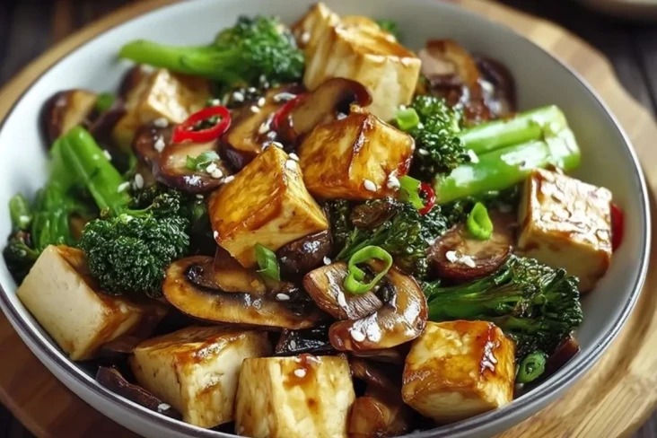 Herzhafte Pilz-Tofu-Pfanne: Dieses Rezept bringt asiatisch inspirierte Aromen mit knusprigem Tofu, frischen Brokkoliröschen und aromatischen Champignons direkt auf deinen Teller. Die würzige Sauce, ein Hauch von Sesam und eine frische Chilinote sorgen für eine perfekte Balance zwischen Umami und Frische – ideal für ein schnelles, gesundes Abendessen unter der Woche.