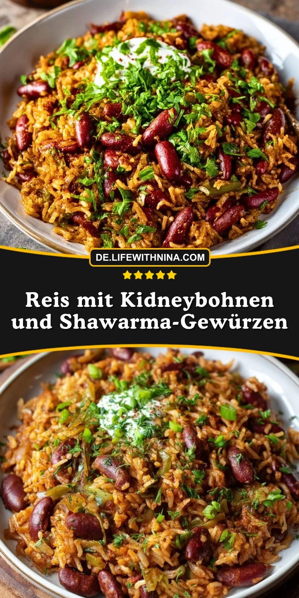 Dieses Gericht verbindet lockeren Reis, cremige Kidneybohnen und die intensive Würze klassischer Shawarma-Gewürze zu einer unkomplizierten, aber unglaublich aromatischen Mahlzeit. Die Mischung aus warmen Gewürzen, sanfter Schärfe, Zwiebeln, Knoblauch und frischer Petersilie sorgt dafür, dass schon beim Kochen ein Duft durch die Küche zieht, der sofort Appetit macht.