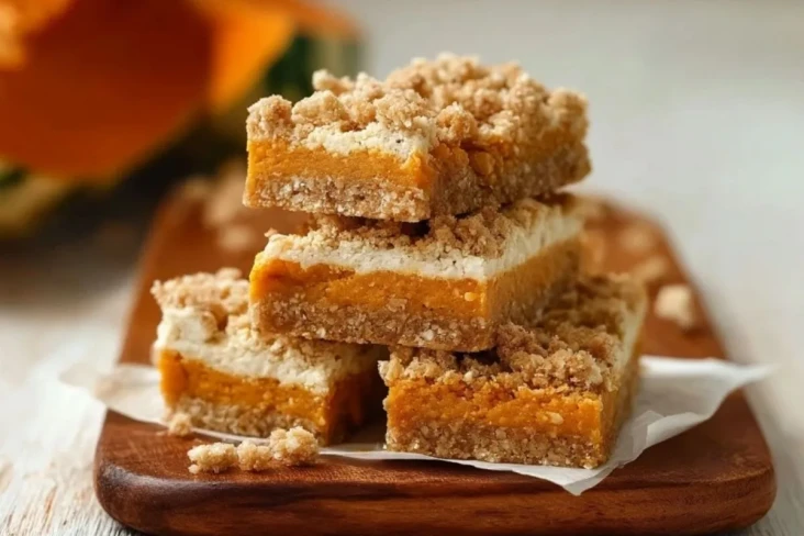 Diese saftigen Kürbis-Joghurt-Riegel sind ein echter Herbsttraum: buttriger Boden, cremige Joghurtfüllung und ein samtiges Kürbispüree, getoppt mit knusprigen Streuseln. Sie vereinen herbstliche Aromen und cremige Leichtigkeit auf köstliche Weise – perfekt als Snack, zum Kaffee oder als Dessert nach einem herbstlichen Festessen.