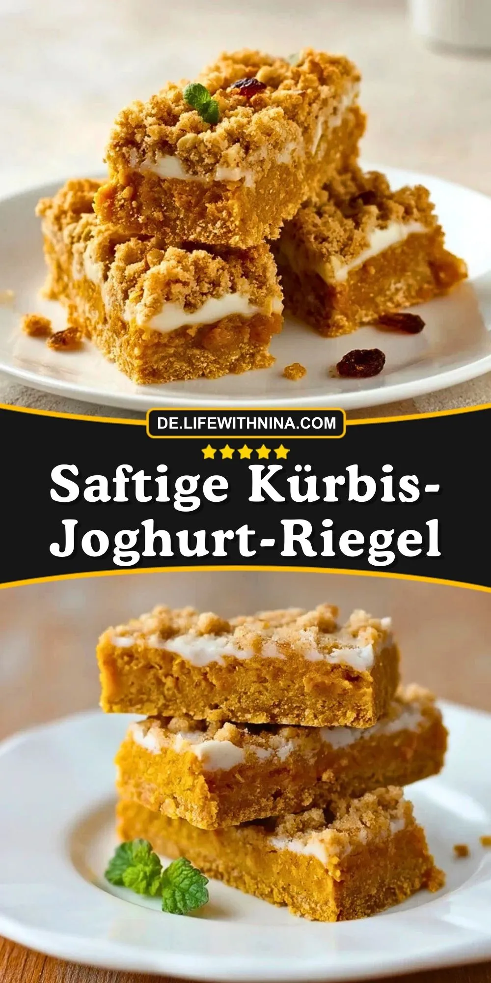 Ob als Mitbringsel für Freunde, Snack für unterwegs oder zum gemütlichen Nachmittagskaffee: Die Kombination aus Zimt, Kürbis und Joghurt macht diese Riegel besonders aromatisch und gleichzeitig angenehm frisch. Sie sind einfach vorzubereiten und überzeugen sowohl kleine als auch große Naschkatzen.