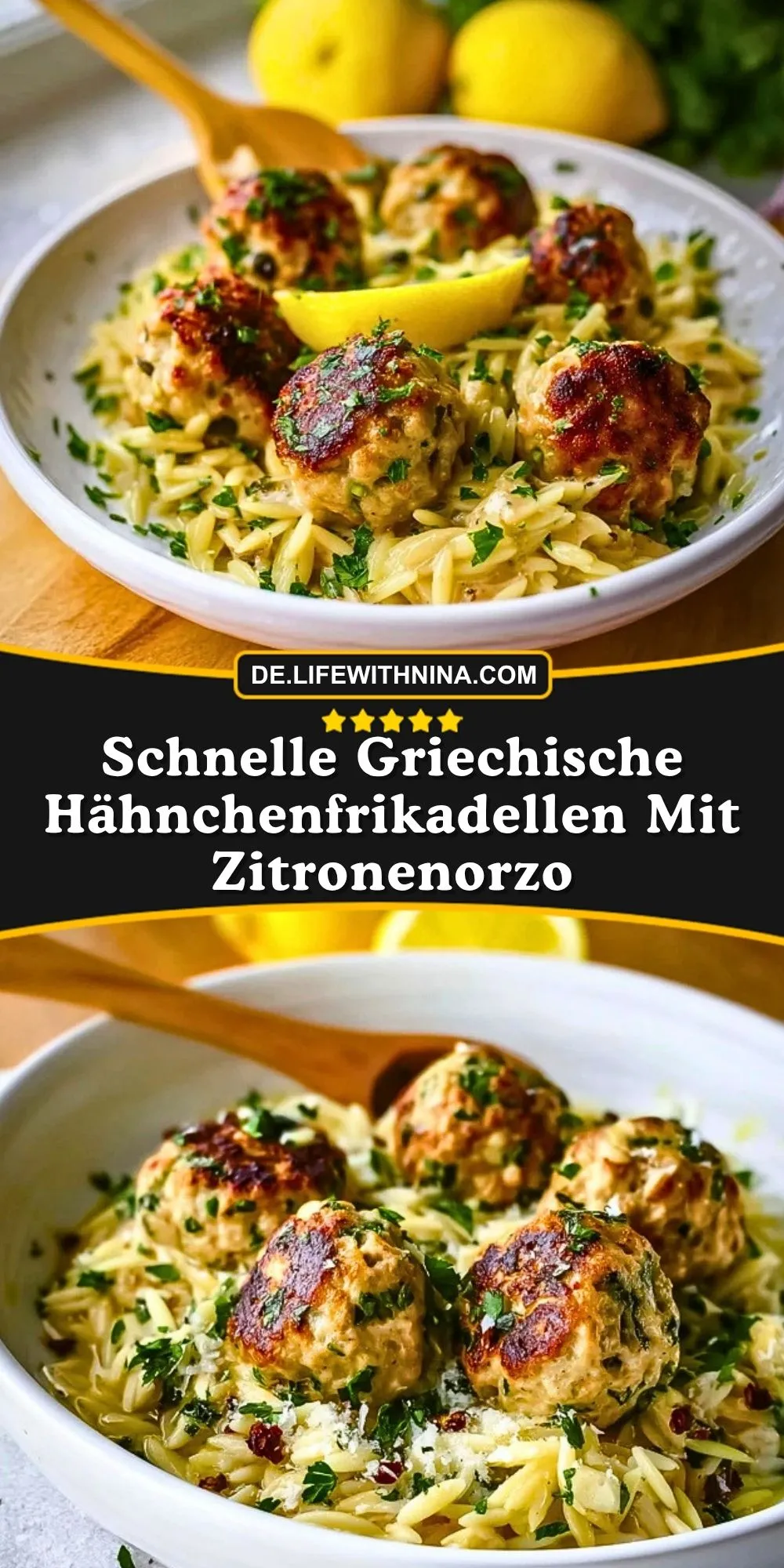 Keywords: Hähnchenfrikadellen, Zitronenorzo, griechisch, schnelles Abendessen, Orzo Rezept