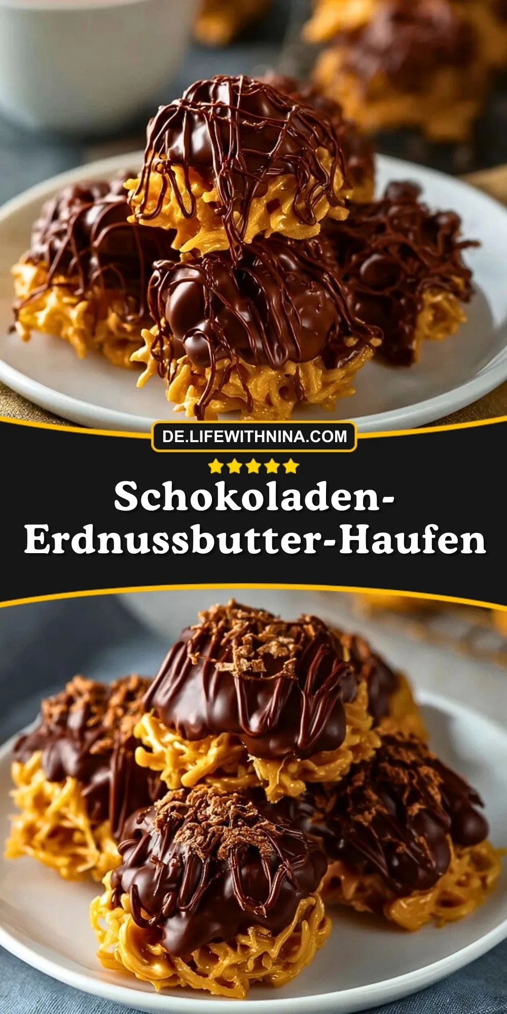 Diese Schokoladen-Erdnussbutter-Haufen sind eine herrlich einfache Süßigkeit mit knuspriger Basis, cremiger Erdnussbutter und glänzendem Schokoladentopping. Sie sind schnell gemacht, brauchen nur wenige Zutaten und eignen sich perfekt für Plätzchenteller, kleine Feiern oder als süßer Snack zwischendurch.
