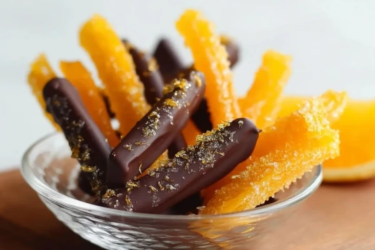 Schokoladenüberzogene Orangenschalen