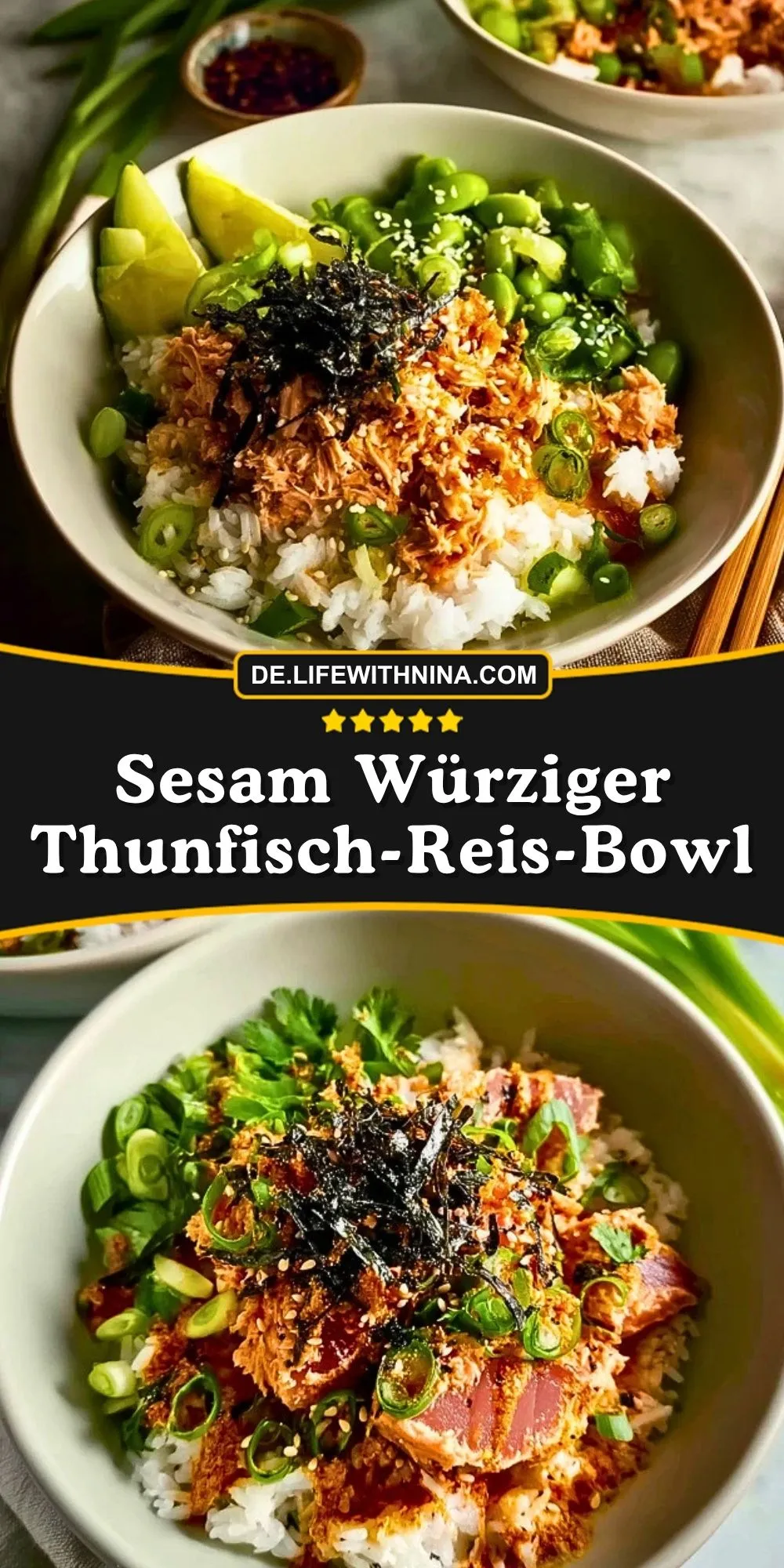 Keywords: Thunfisch Bowl, Reis Bowl, Sesam Bowl, würzige Bowl, schnelle Bowl