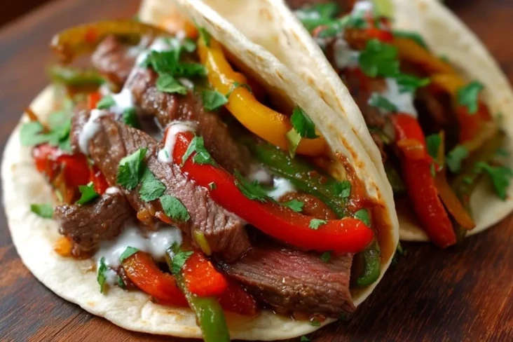 Steak Fajitas sind ein würziges, schnelles Pfannengericht mit zarten Rindfleischstreifen, bunt gebratener Paprika, Zwiebeln und warmen Tortillas. Frischer Limettensaft, aromatische Gewürze und kräftige Röstaromen machen dieses Gericht saftig, herzhaft und ideal für ein unkompliziertes Abendessen.
