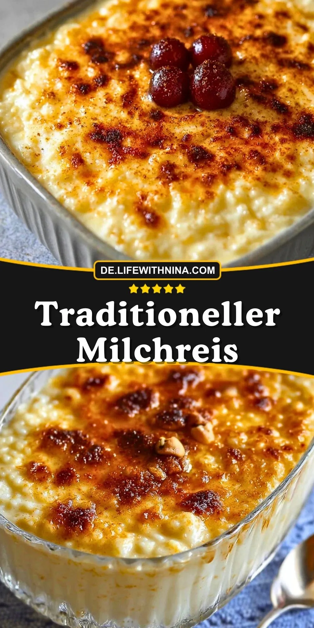 Absolut! Milchreis in eine Auflaufform geben, mit etwas Zucker und Butterflöckchen bestreuen und bei Oberhitze oder Grillfunktion kurz gratinieren, bis eine goldene Kruste entsteht.