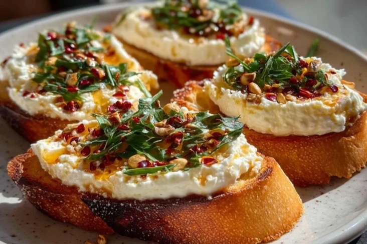 Diese knusprigen Crostini mit cremig aufgeschlagenem Feta, würzigem Honig und feiner Schärfe sind eine einfache, aber beeindruckende Vorspeise. Sie verbinden salzige, süße und pikante Aromen auf geröstetem Brot und eignen sich perfekt für Gäste, Brunch oder einen besonderen Snack zwischendurch.