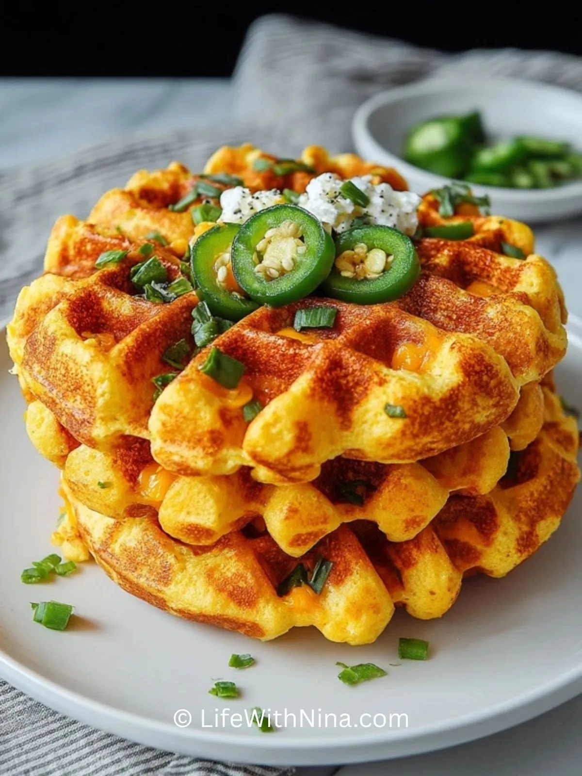 Keywords: Maiswaffeln, Cheddar, Jalapeño, herzhafte Waffeln, Brunch
